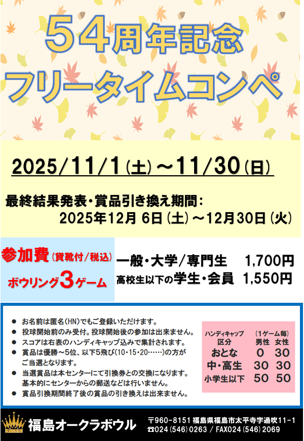 福島オークラボウル54周年記念