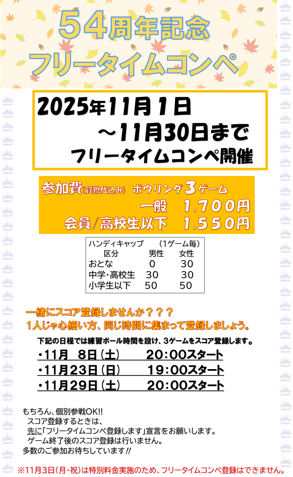 11月3日は「1ゲーム100円デー」