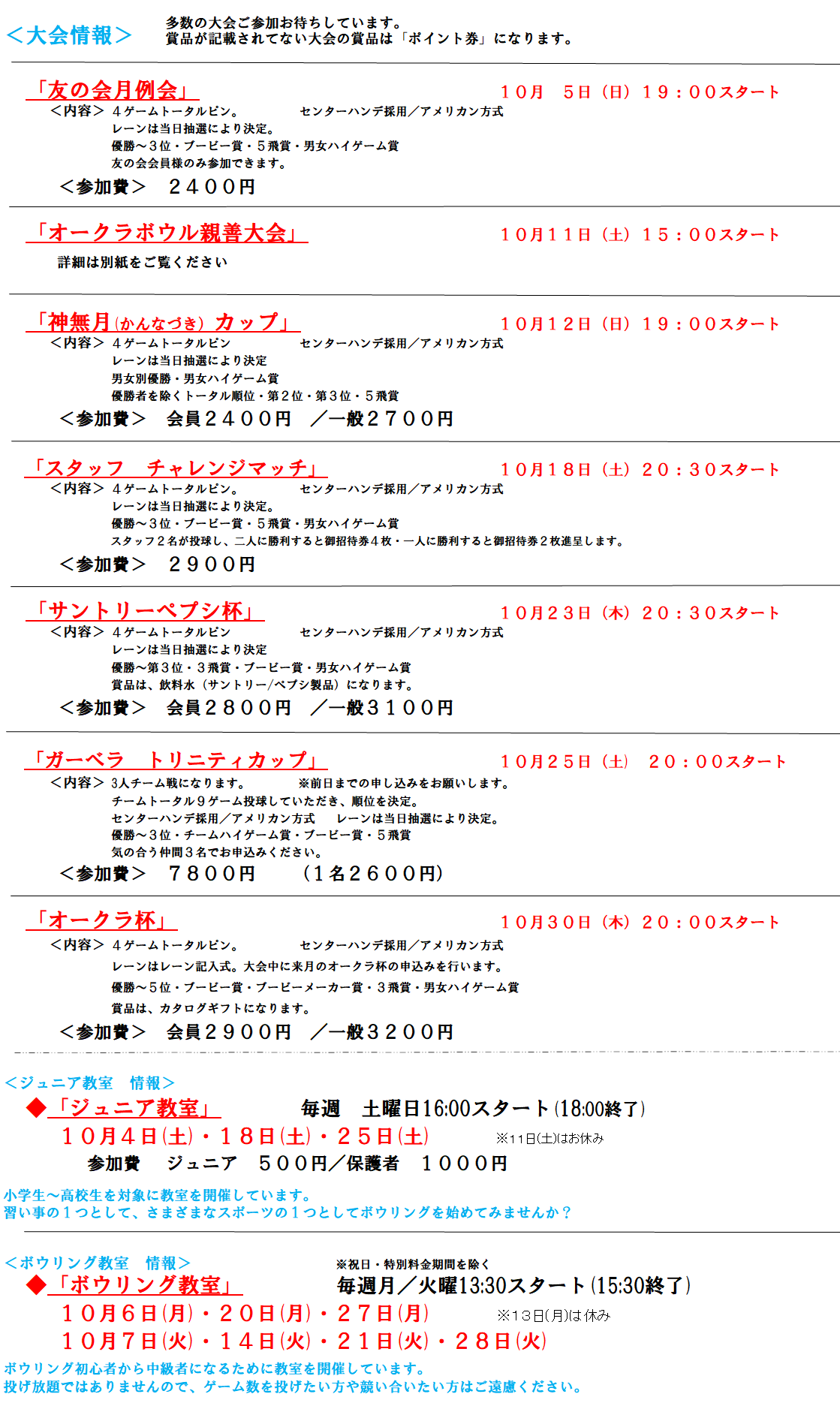 10月大会/教室の詳細↓↓