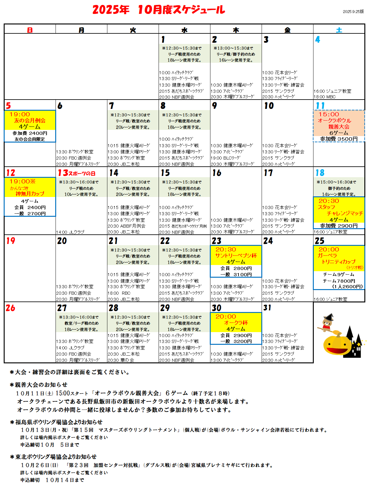 2025年10月度 大会スケジュール