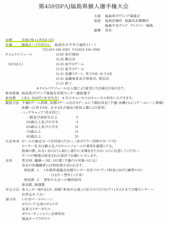 福島県ボウリング場協会よりお知らせ