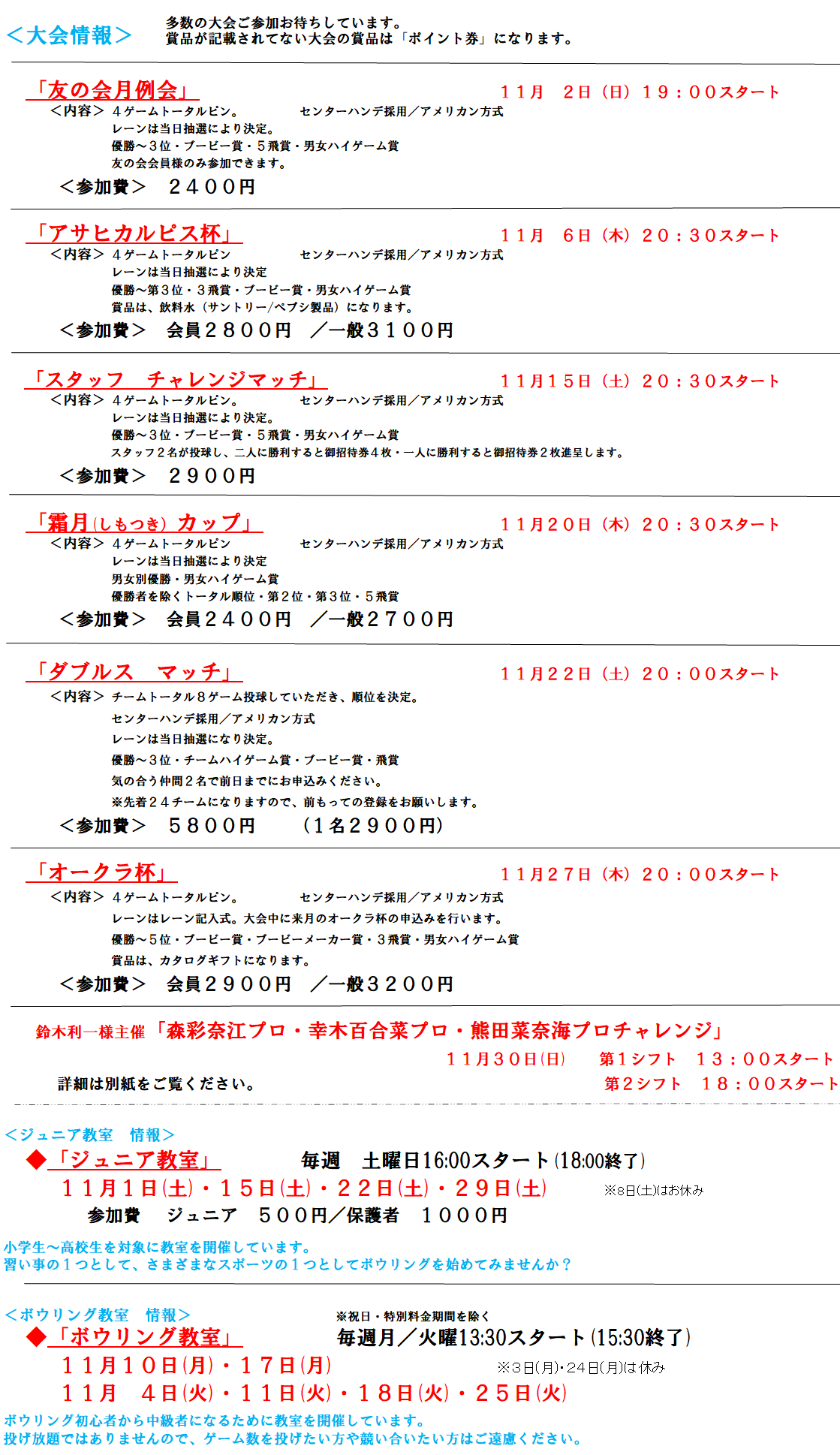 2025年11月度 大会スケジュール